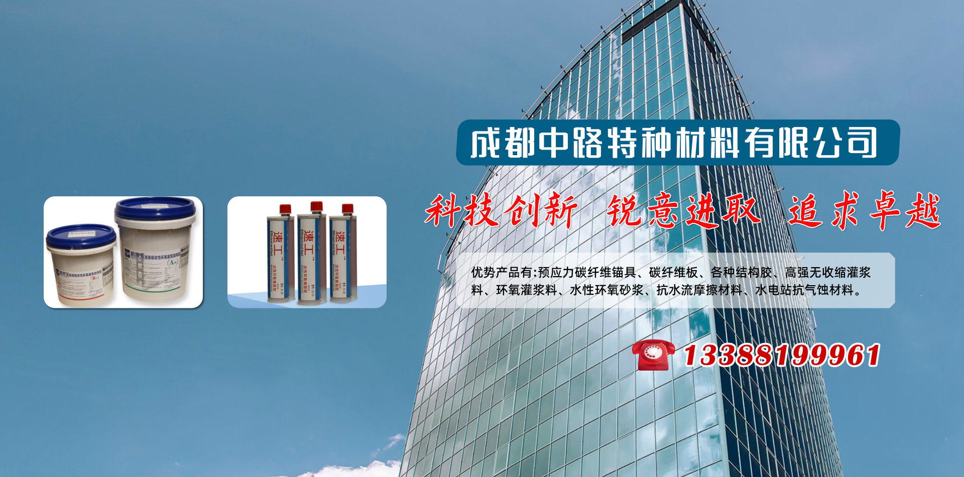 成都中路特種材料有限公司借助清華大學(xué)高分子材料學(xué)科、晨光化工研究院、西南交通大學(xué)、四川交通職業(yè)技術(shù)學(xué)院科研技術(shù)平臺(tái)成為一家集新材料研發(fā)、銷售、技術(shù)服務(wù)和施工于一體的專業(yè)服務(wù)公司,優(yōu)勢(shì)產(chǎn)品有:預(yù)應(yīng)力碳纖維錨具、碳纖維板、各種結(jié)構(gòu)膠、高強(qiáng)無收縮灌漿料、環(huán)氧灌漿料、水性環(huán)氧砂漿、抗水流摩擦材料、水電站抗氣蝕材料和研發(fā)各種特殊用途膠黏劑產(chǎn)品地處西南腹地成都,業(yè)務(wù)覆蓋四川各大中小城市、重慶、云南、昆明、新疆、西藏等區(qū)域。產(chǎn)品涵蓋各種加固施工材料、施工設(shè)備及施工配件,品牌有威士邦等aa進(jìn)口品牌,同時(shí)批發(fā)銷售國產(chǎn)高、中、低端品牌,為客戶提供全面參考。